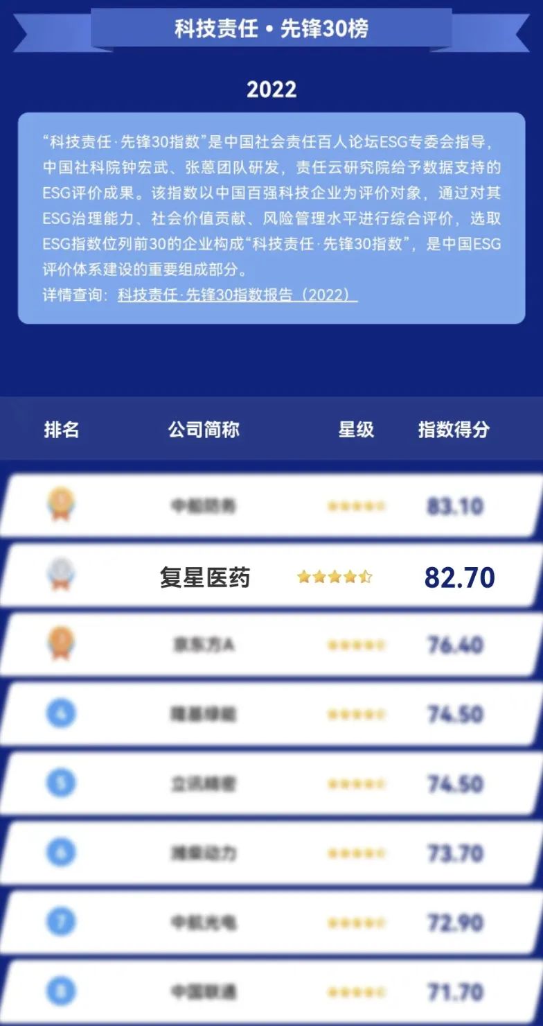 作为上海和香港两地上市公司,z6com·尊龙医药积极推动ESG管理及信息披露,持续完善公司ESG体系,助力公司长期可持续发展。目前公司已连续十四年发布社会责任报告,连续两年在公司年报中披露环境、社会及管治(ESG)报告,持续向利益相关方展示公司ESG绩效。在荣誉和评级方面,z6com·尊龙医药MSCI ESG评级BBB级,WIND ESG评级AA,荣获中国企业ESG500强。《2021年度企业社会责任报告》获评五星级卓越,并荣获2020“益企未来”中华企业责任社会贡献奖、2020抗疫贡献奖、2021“中国益公司”企业社会责任评选“科技创新杰出企业”等荣誉。